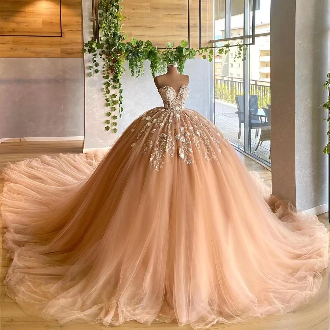 Luxury Embroidery Flowers Ball Gown Sweet Heart Strapless Bridal Gowns