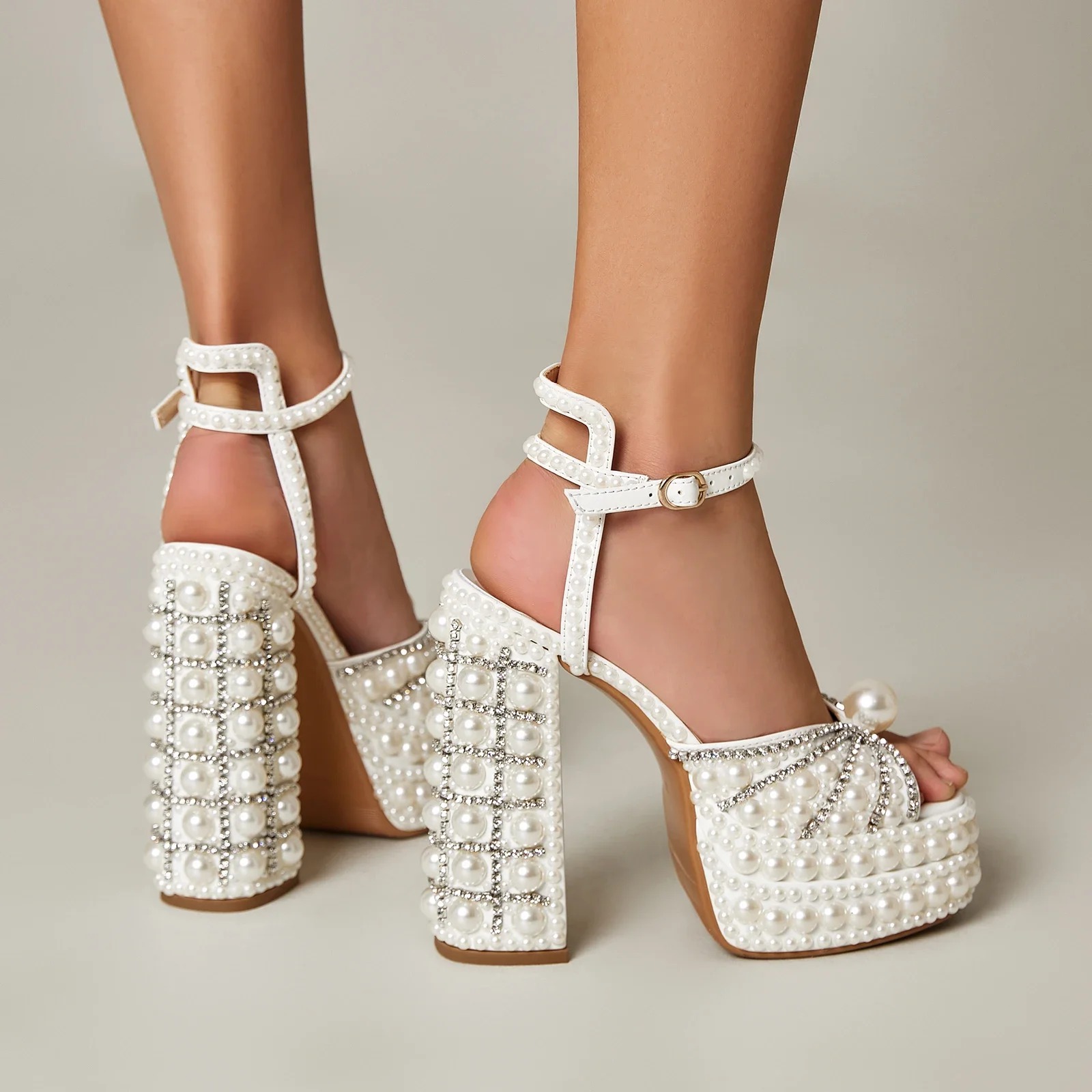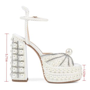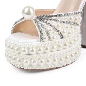 Luxury Pearl Rear Strap Fish Mouth Rivet Party Platform High Square Heel Sandals