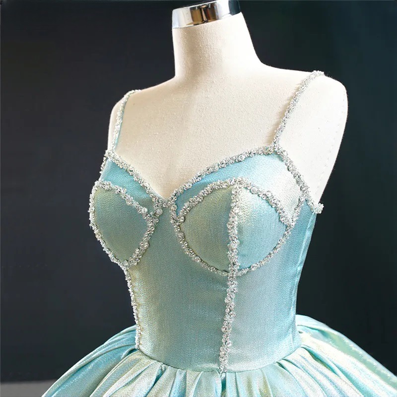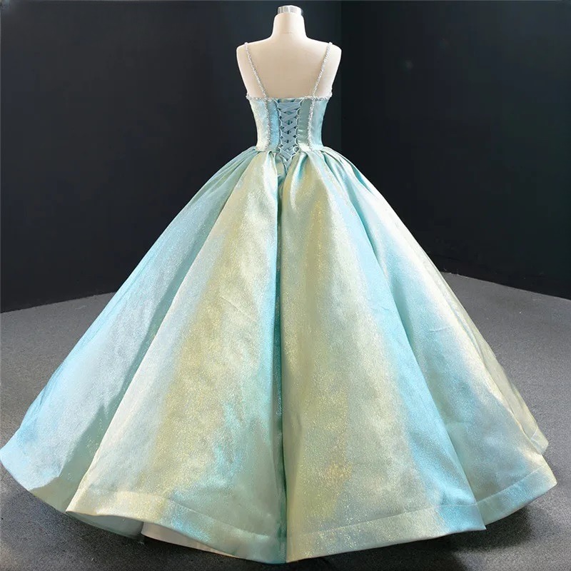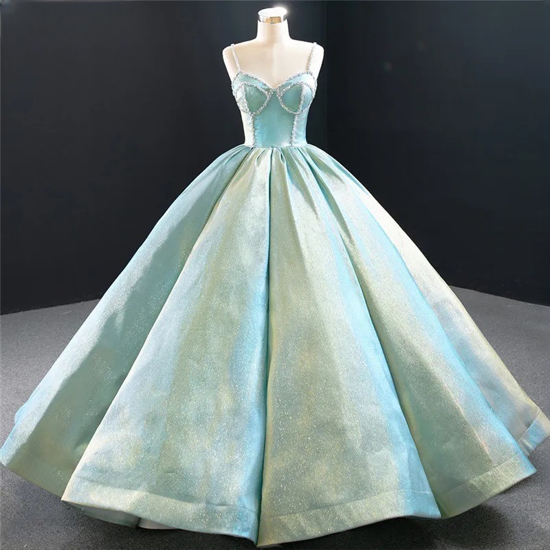 Luxury Princess Glitter Wedding Dress Spaghetti Straps Lace Up Bridal Gown