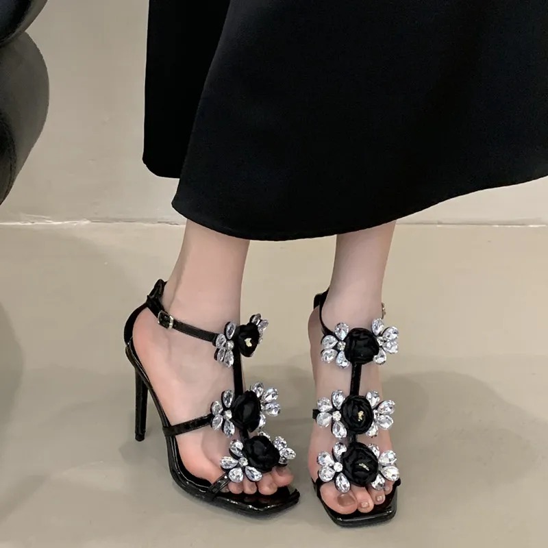 Be the first to review “Luxury Rhinestones Flowers Buckle Strap Gladiator Narrow Band Sandals”
