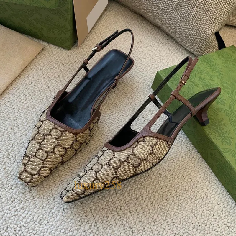 Luxury sandals dotted fashion designer crystals sparkling back buckle kitten stylish heel