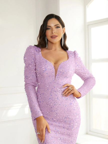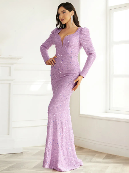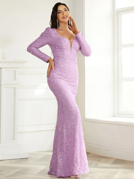 Luxury Sequin Long Sleeve Mermaid Party Dress