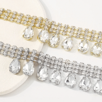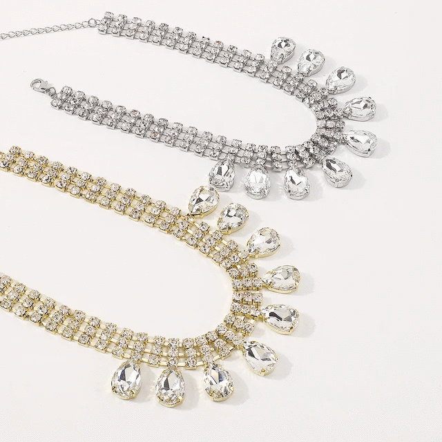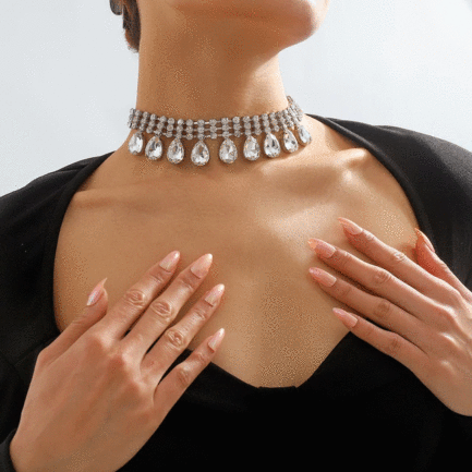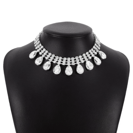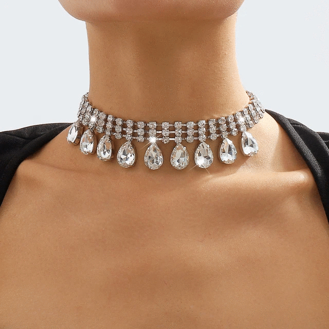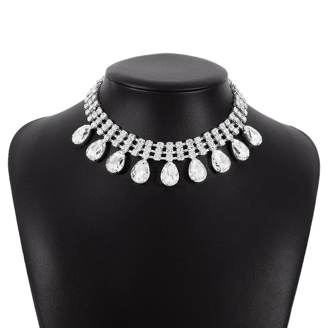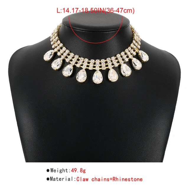 Luxury Shiny Iced Out Rhinestone Tassel Choker Necklace