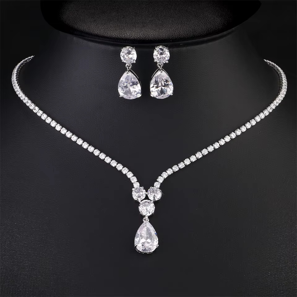 Luxury Water Drop Zircon Bridal Necklace Earrings Set