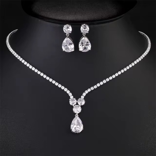 Be the first to review “Luxury Water Drop Zircon Bridal Necklace Earrings Set”