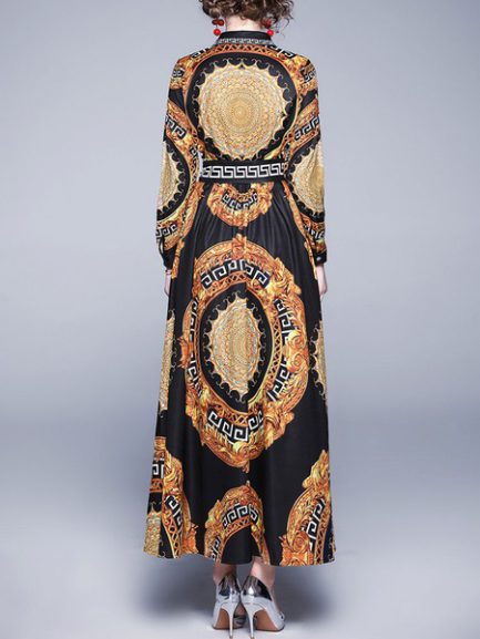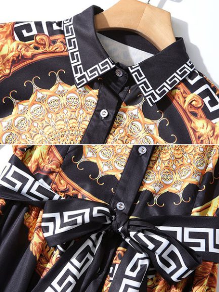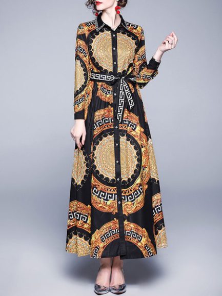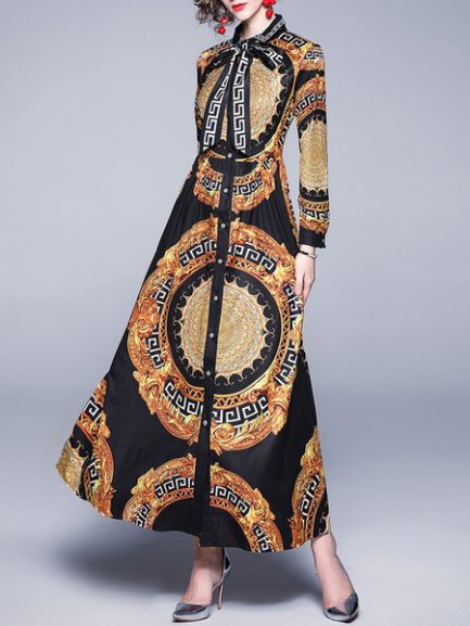 Be the first to review “Maxi Dresses Printed Turn down Collar Buttons High Low Design Polyester Long Dress”