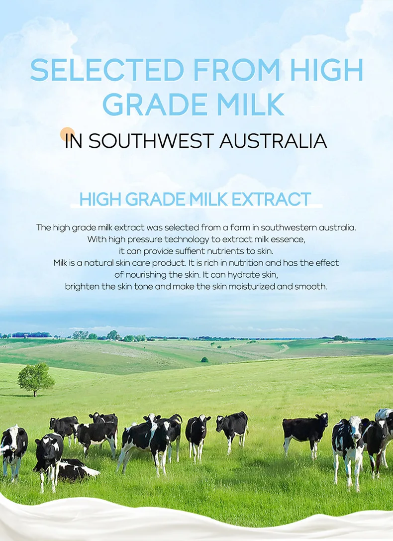 Milk Extract, Sodium Hyaluronate, Canella Asiatica Leaf Extract, Calendula Officinalis Flower Extract, Hydrolyzed Rice Protein