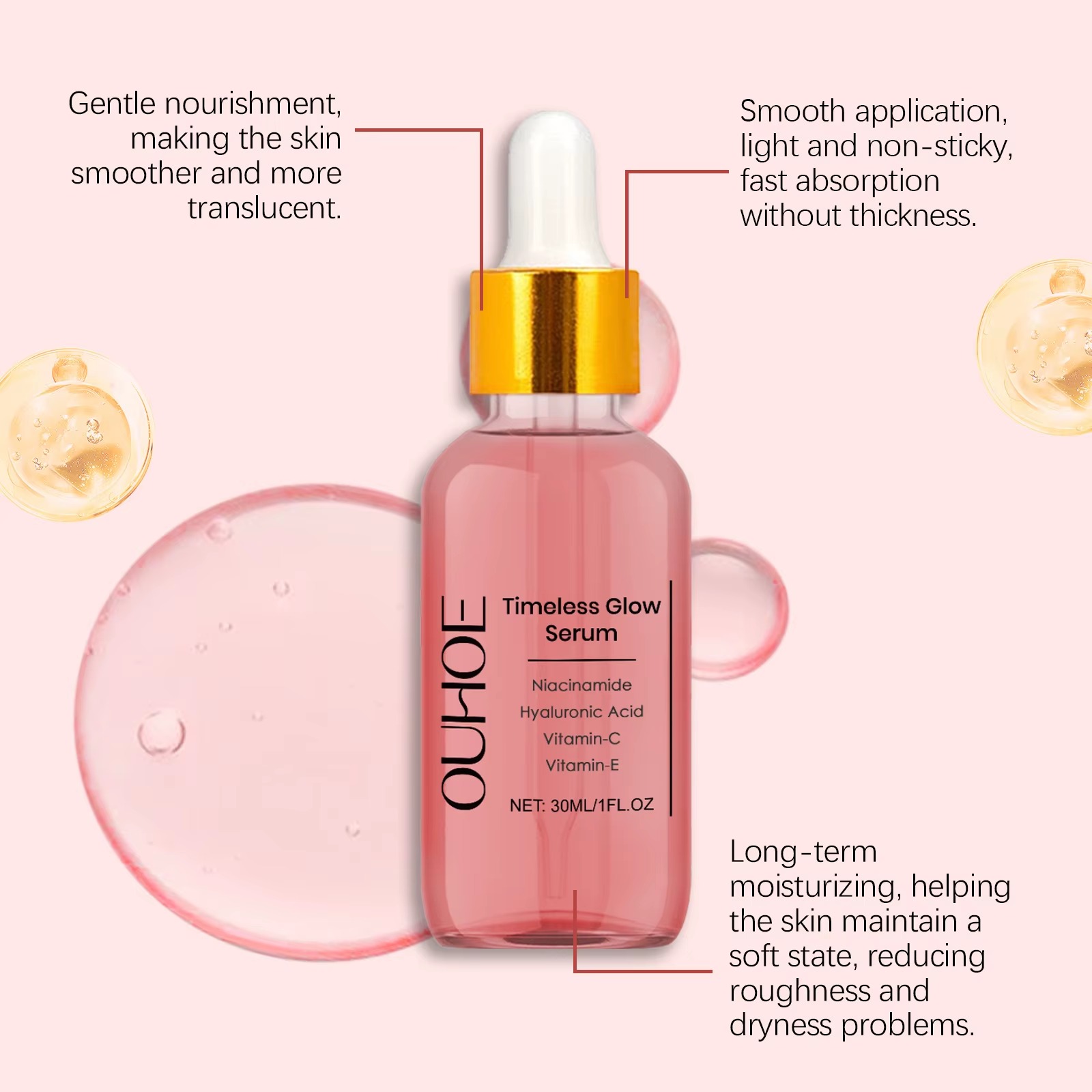 2. Brighten skin tone, improve uneven skin tone, and demonstrate a healthy state. Help the skin maintain long-lasting hydration and reduce dryness and discomfort.