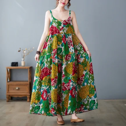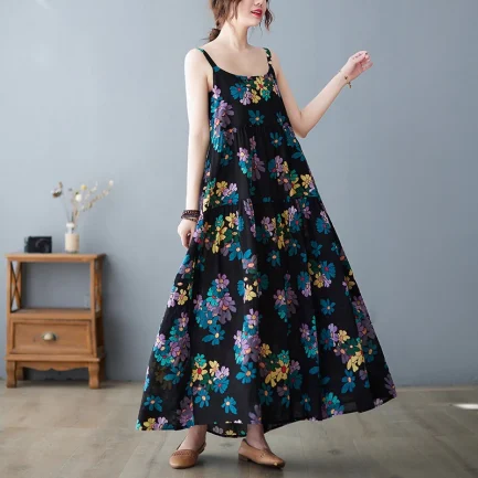 Be the first to review “Sleeveless Strap Cotton Linen Vintage Floral Casual Loose Dresses”