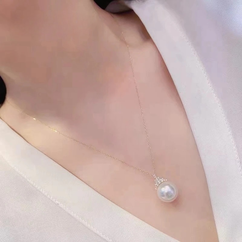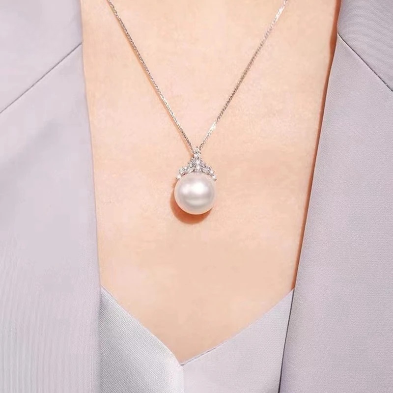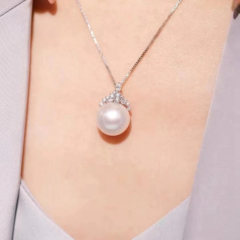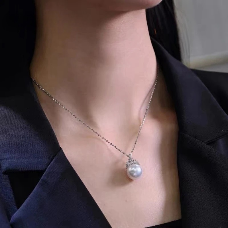 Natural Freshwater Pearl Pendant Necklace Single Ice Queen Zircon Classic Collar Chain