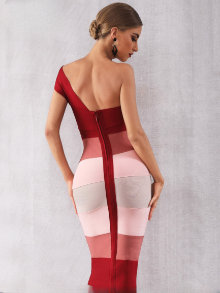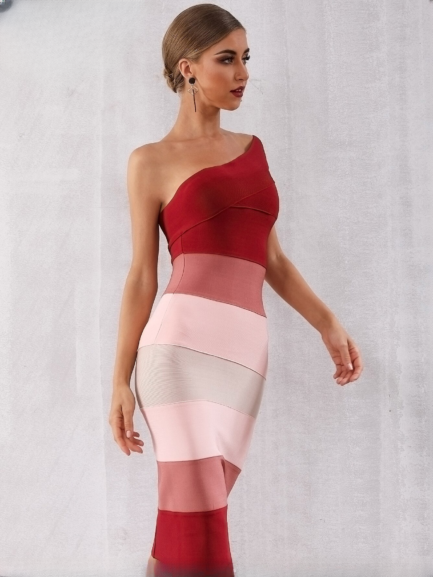 One Shoulder Bandage Dress Sexy Sleeveless Mid-Calf Bodycon