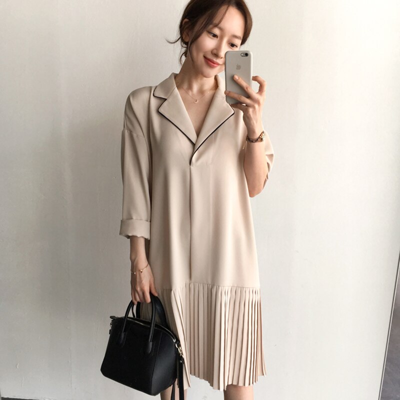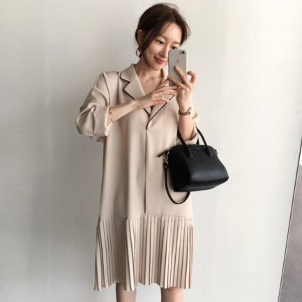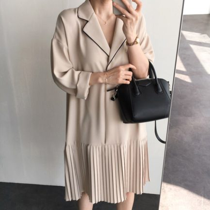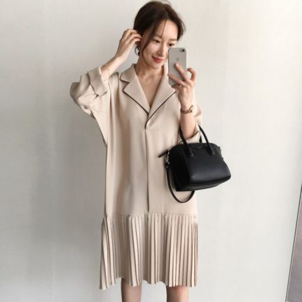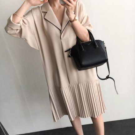 Be the first to review “Notched Collar Solid Pleated Shirt Dress”