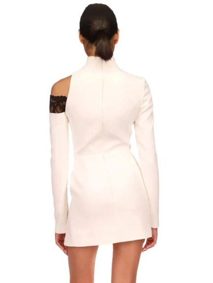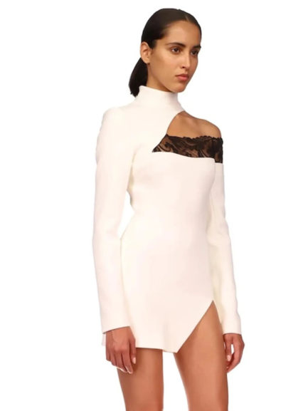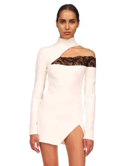 O Neck Lace Trim Long Sleeve Bodycon Dress