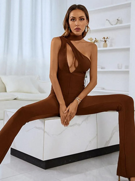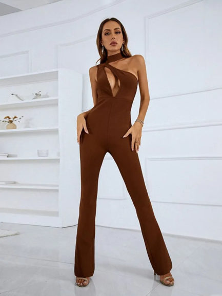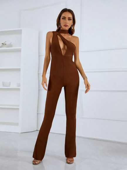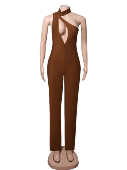 Off Shoulder Hollow Out Bodycon Jumpsuit
