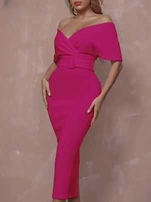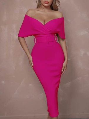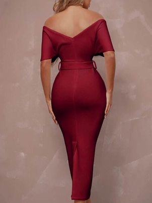 Off Shoulder Short Sleeve V Neck Elegant Sashes Party Dresses
