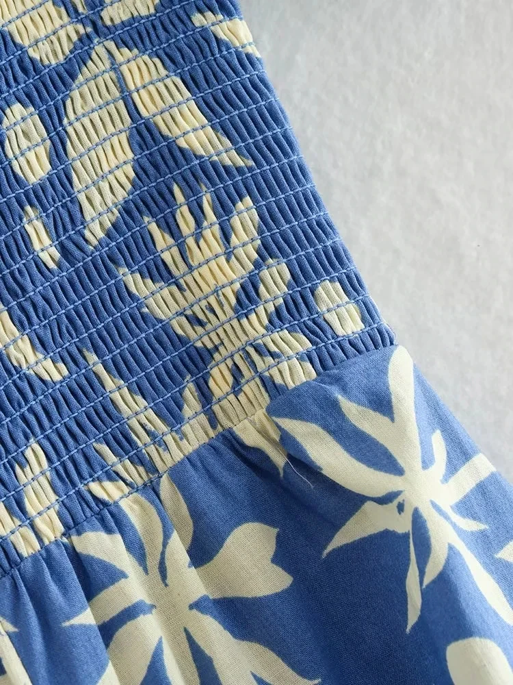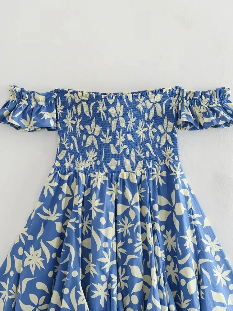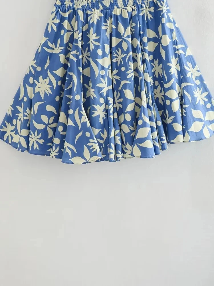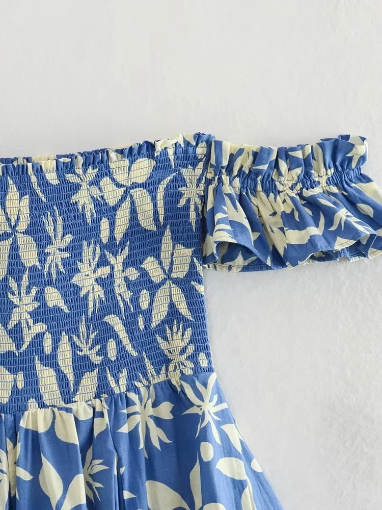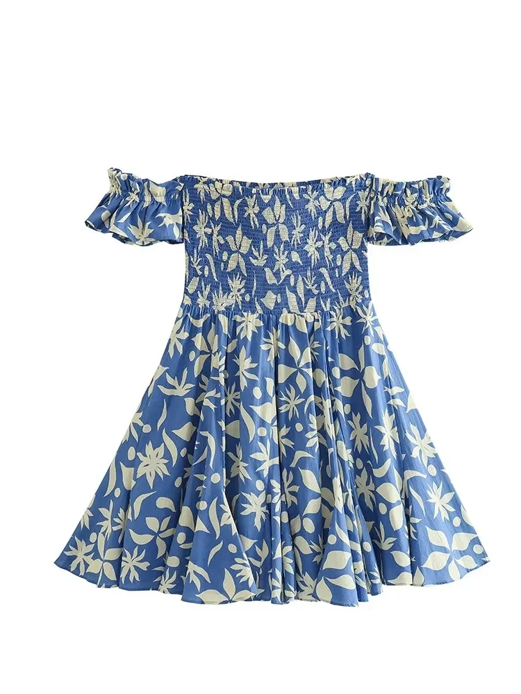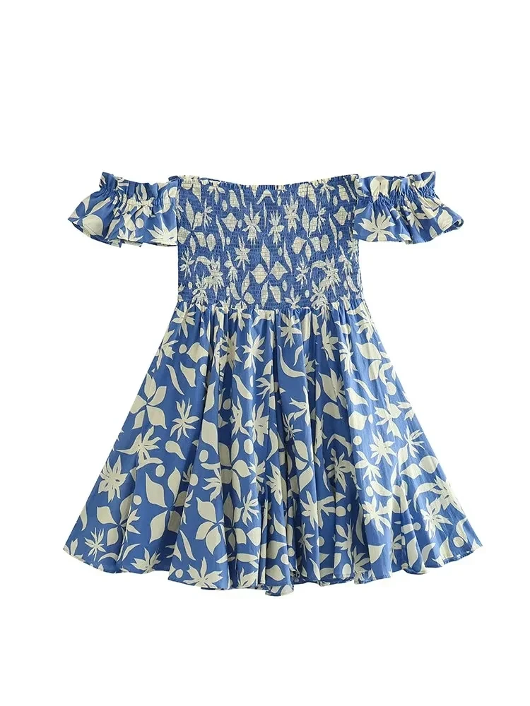 Be the first to review “Ruffle Off Shoulder Blue Print Short Dresses Mini Dresses”