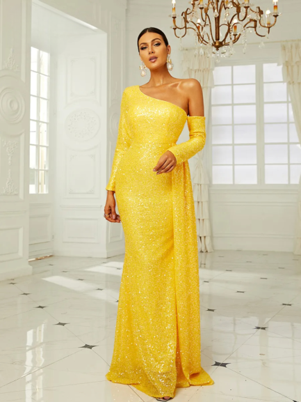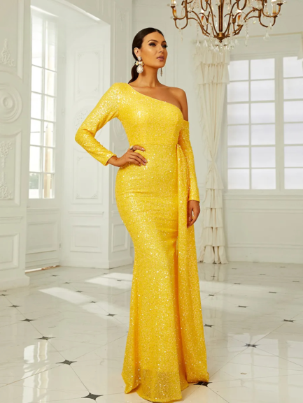 One Shoulder Draped Long Dress