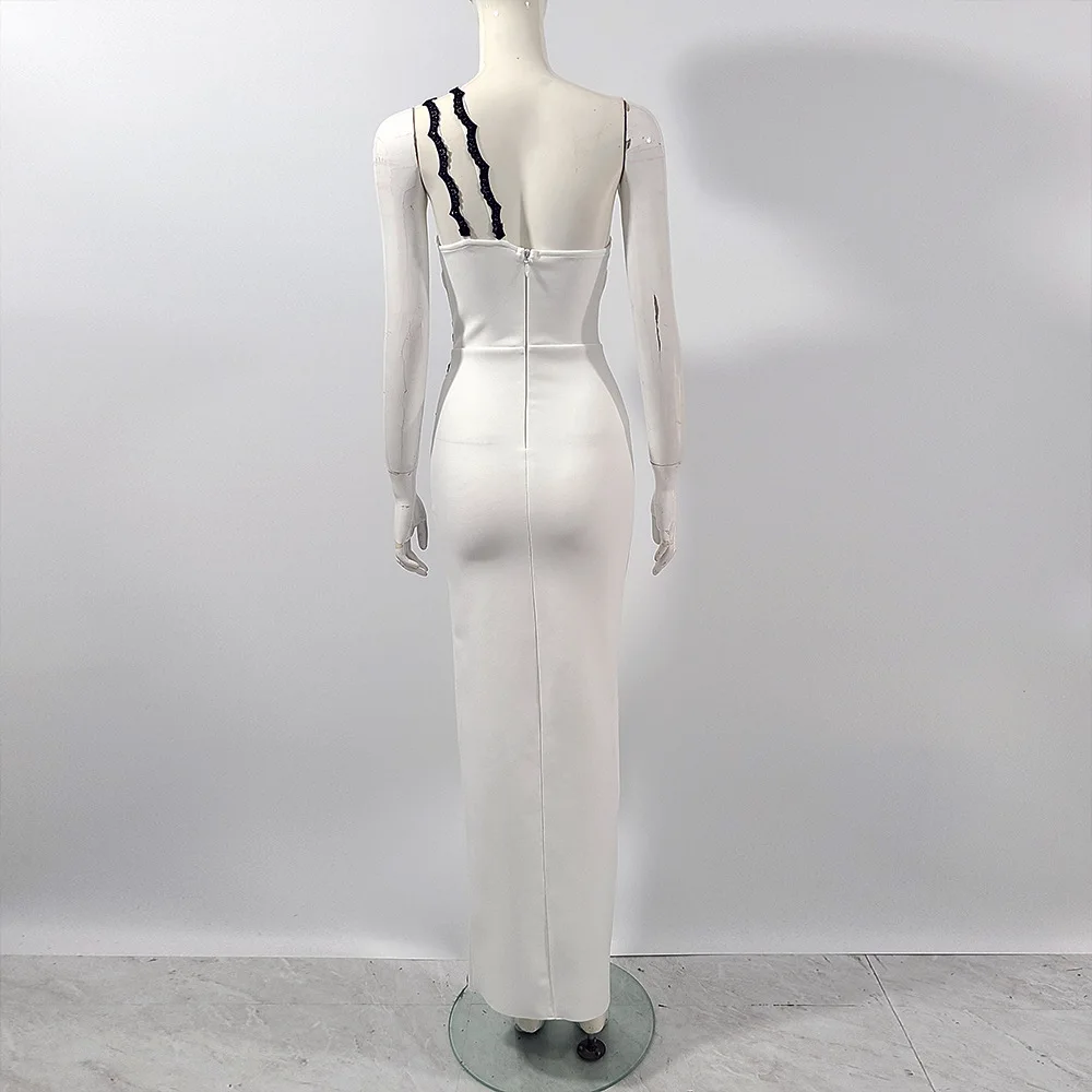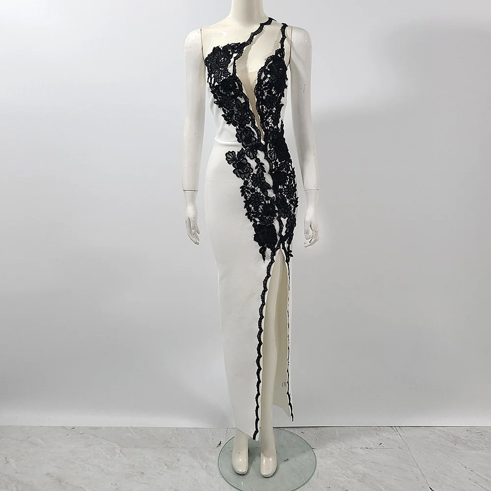 One Shoulder Lace Gloves High Split Celebrate Nightclub Party Bodycon Outfit