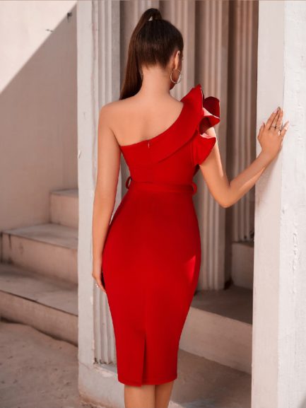Be the first to review “One Shoulder Ruffle Sexy Night Club Celebrity Evening Midi Elegant”