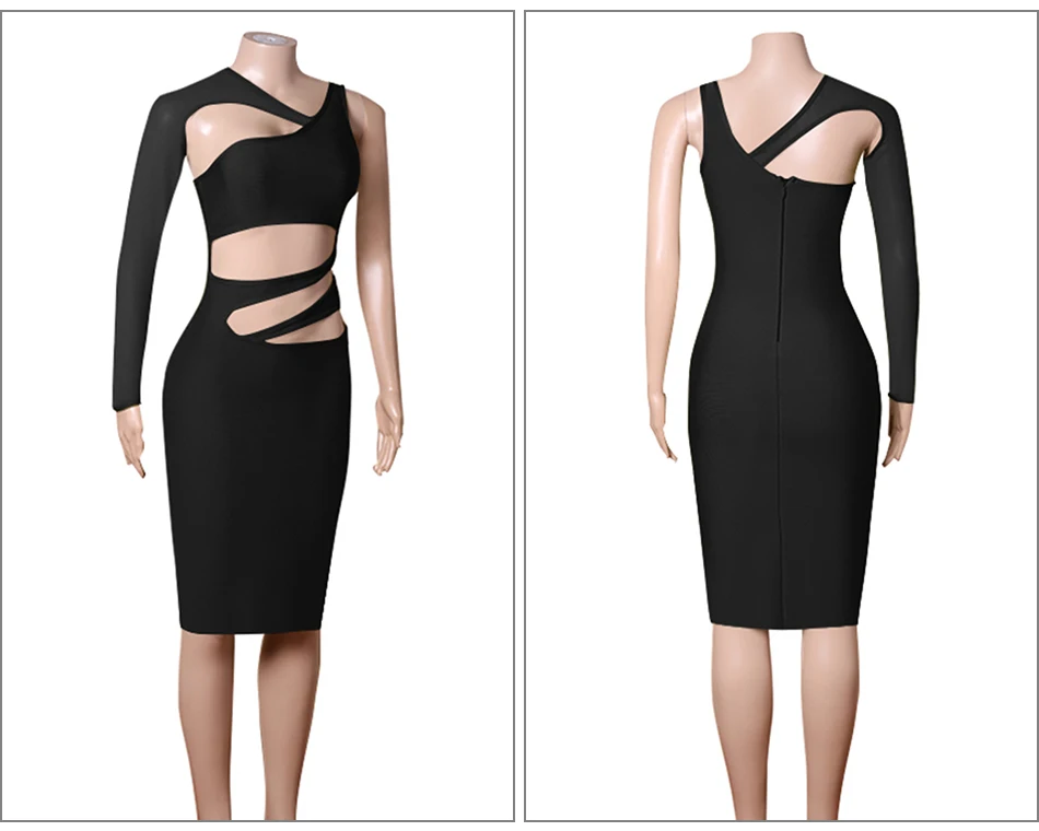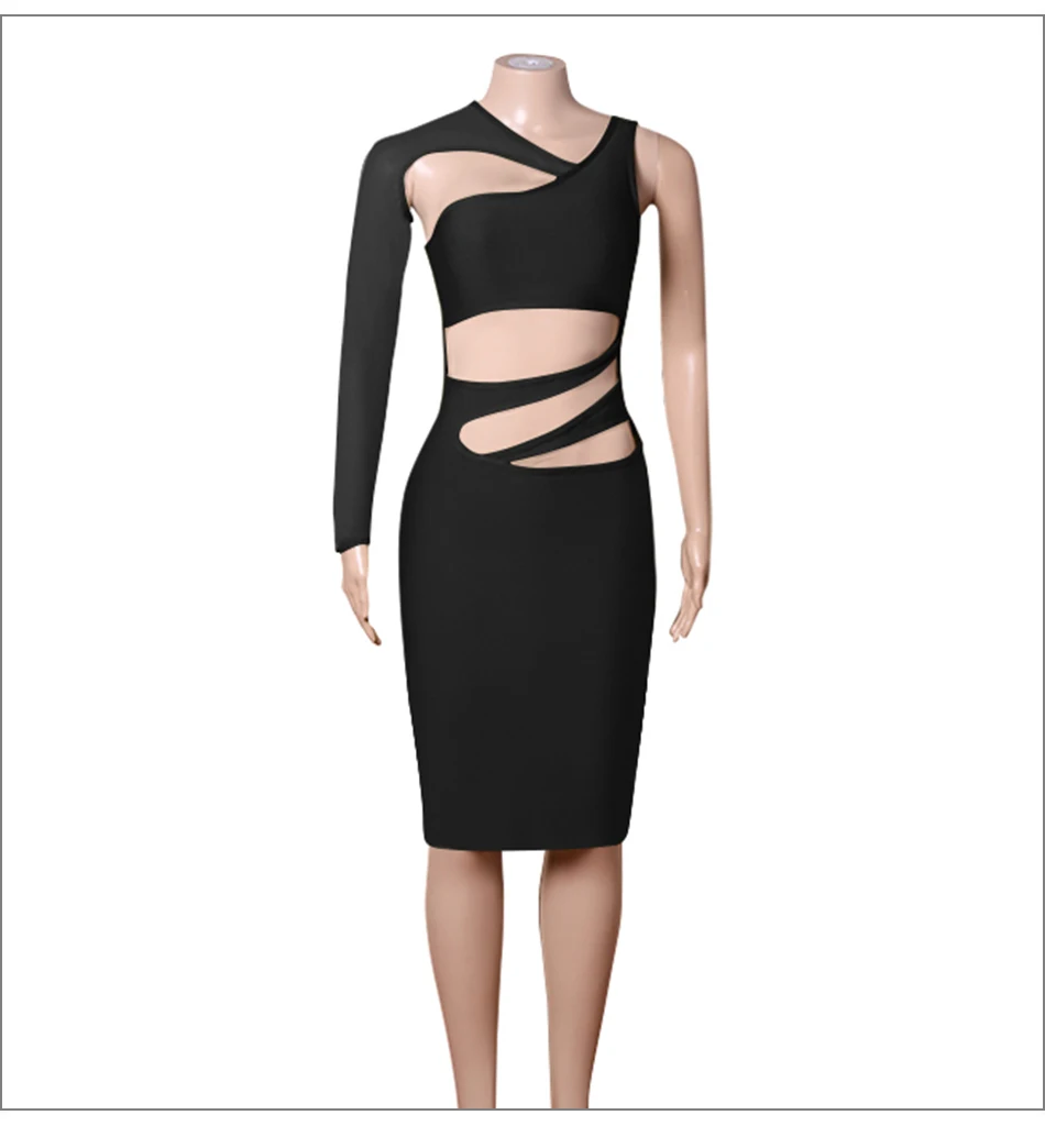 Be the first to review “One-Shoulder Sheath Bandage Dress Modern Hollow Out Design”