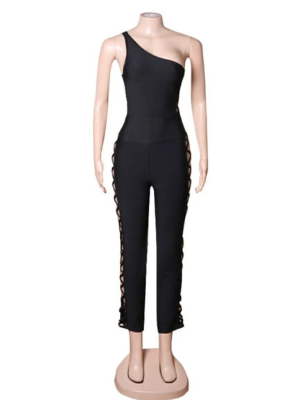 One Shoulder Sleeveless Bodycon Jumpsuit