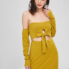 This mini dress with the halter collarline in a pastoral-flower charm has a curve-hugging fit that is also amazingly comfortable. Stunning in the lace-up placket and a barely open back with a hidden back zipper closure for fit, it always looks good when pairing it with the simple sliders or the chic heels.
