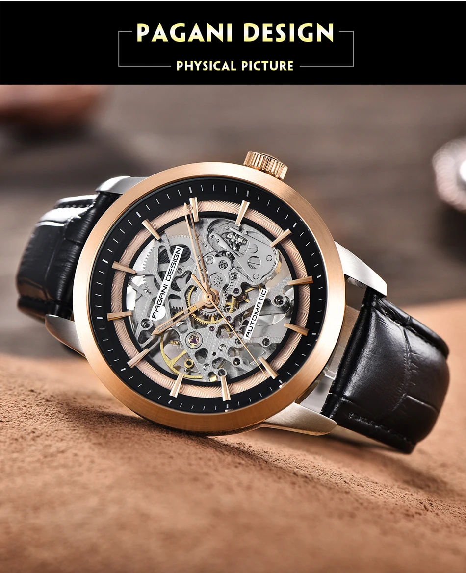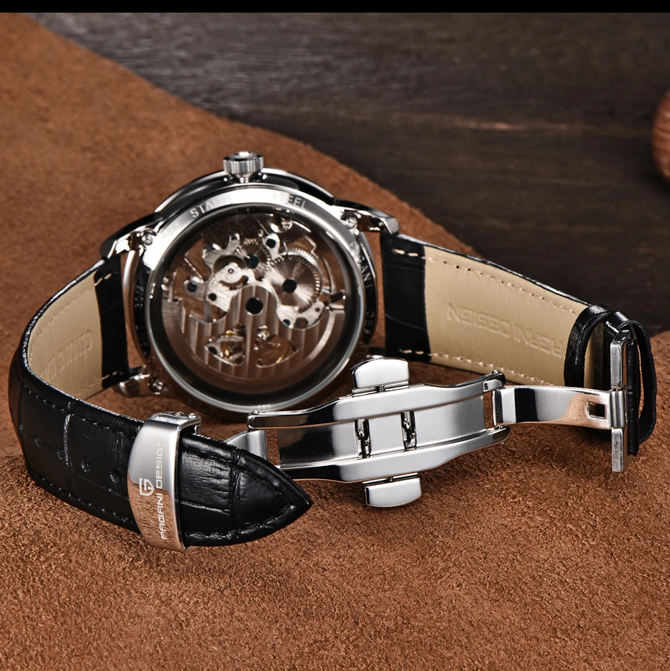 PAGANI DESIGN Luxury Automatic Mechanical Stainless Steel Sports Leather Belt Watch