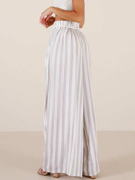 Palazzo Pants Wide Leg Pants White Striped High Waisted Pants For Women
