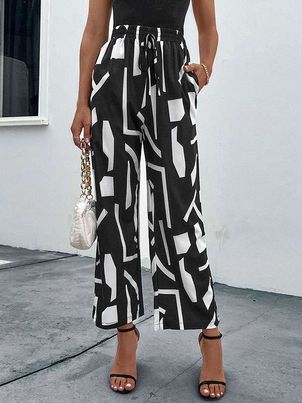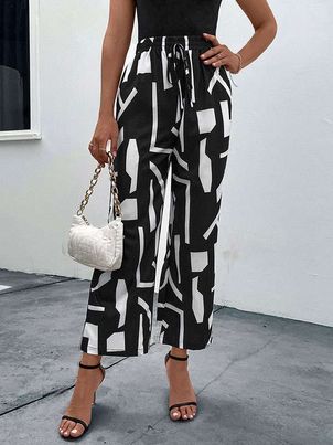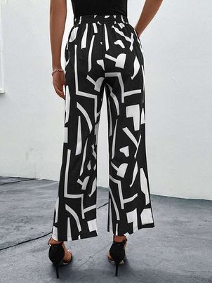 Pants Black Natural Waist Two-Tone Printed Trousers