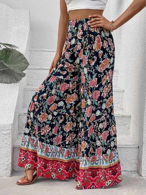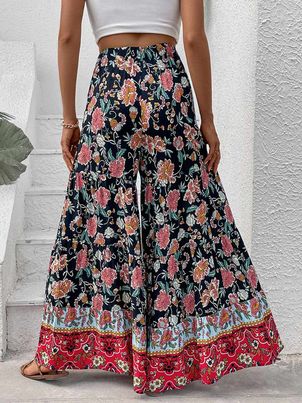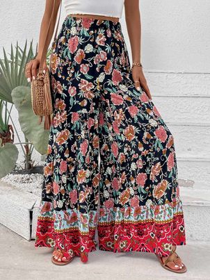 Pants Black Oversized High Rise Waist Floral Print Trousers
