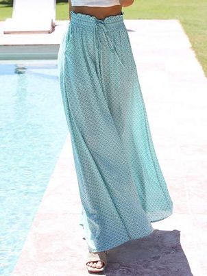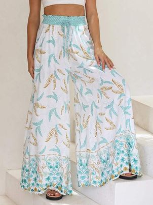 Pants Lace Up Raised Waist Floral Print Trousers