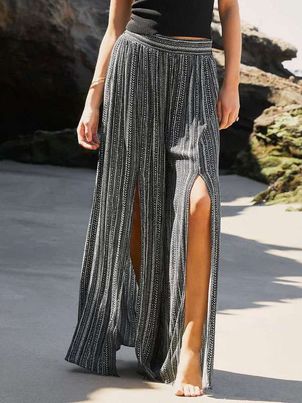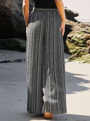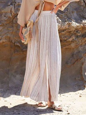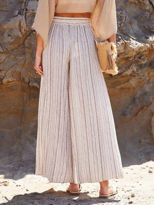 Pants Light Apricot Oversized High Rise Waist Stripes Trousers
