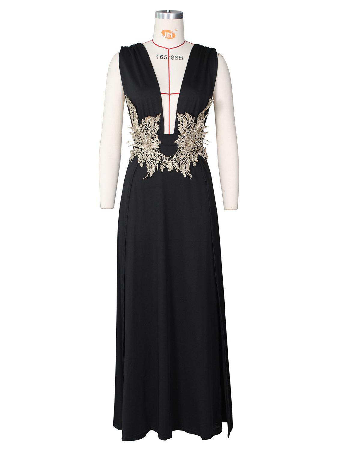 Party Dresses V-Neck Embroidered High-slit Semi Formal Long Dress