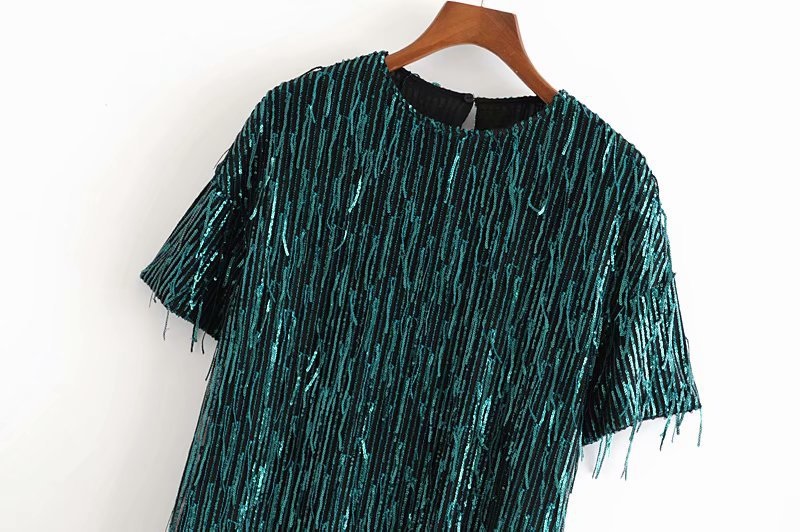 Be the first to review “Patchwork O Neck Sequins Short Sleeve Mini Dress”