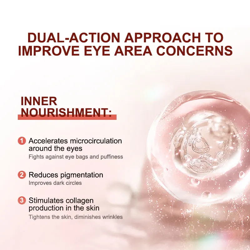 Specially formulated with caffeine and astaxanthin, it helps eliminate pigmentation around the eyes and promotes blood circulation in the eye area, reducing the appearance of dark circles and eye bags, leaving more exquisite and charming eyes.