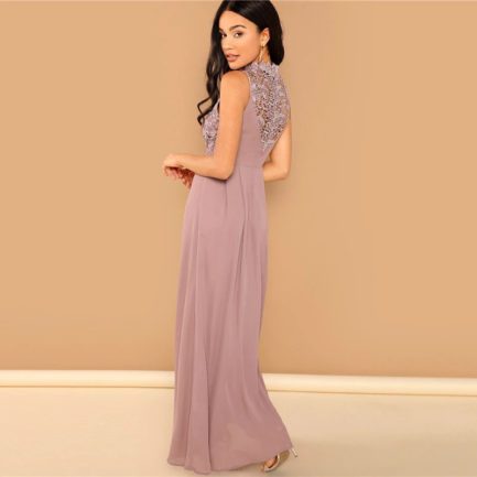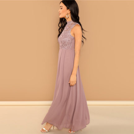 Pink Guipure Lace Overlay Bodice Maxi Dress