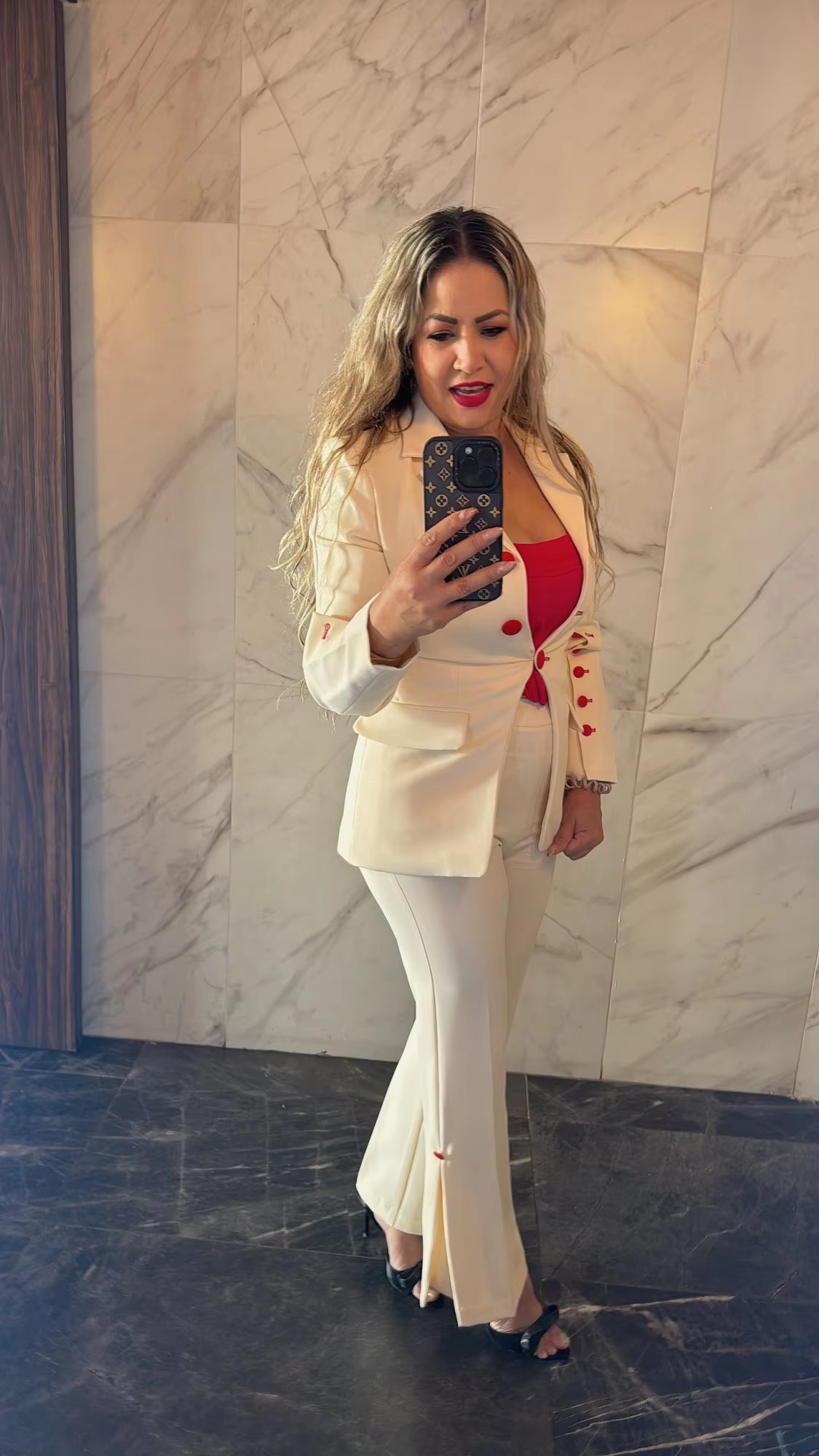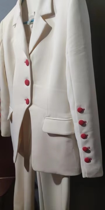 Pleated Buttons Trim Blazer Flare Pants Slit Runway HIGH STREET Pants Suit