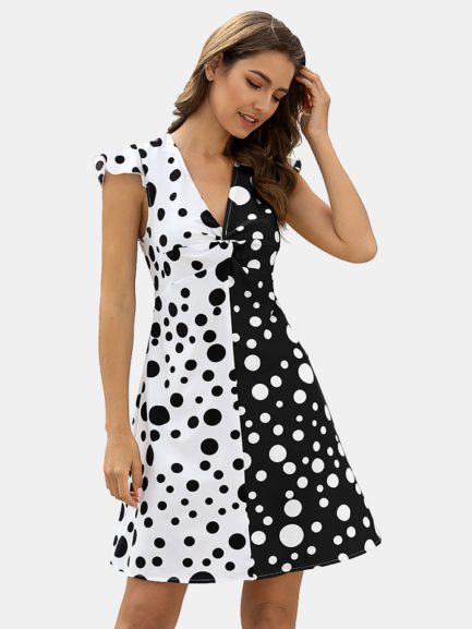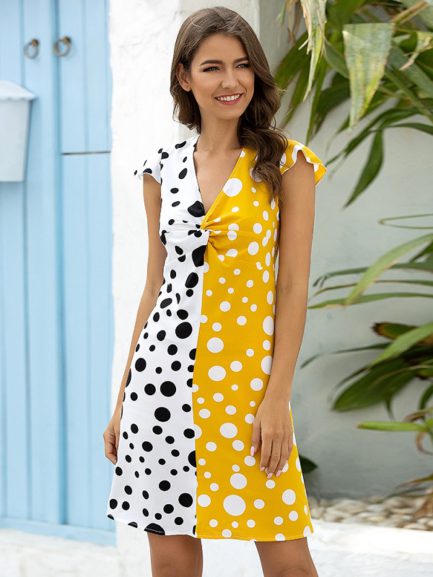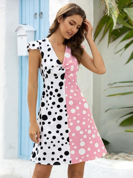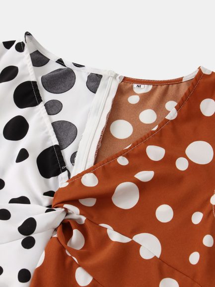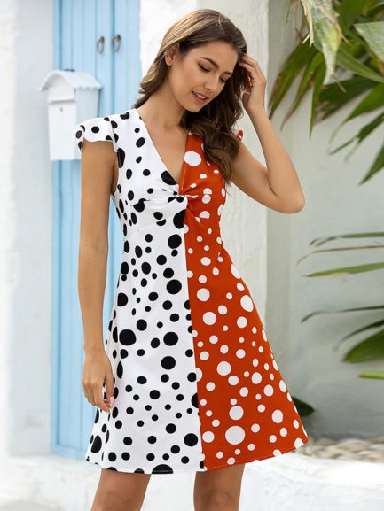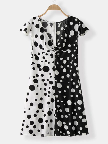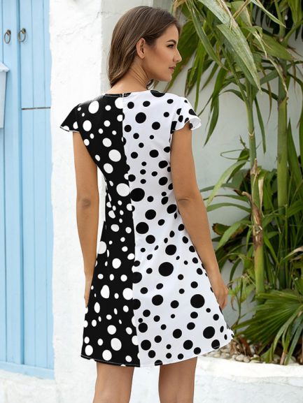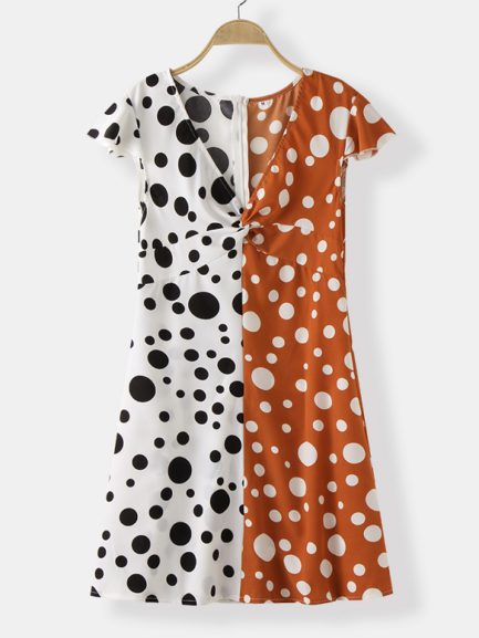 Be the first to review “Polka Dots Print Color Block Short Sleeve Mini Dress”