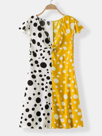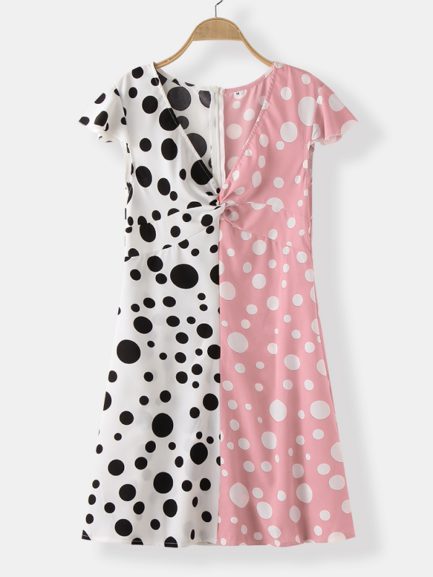 Polka Dots Print Color Block Short Sleeve Mini Dress