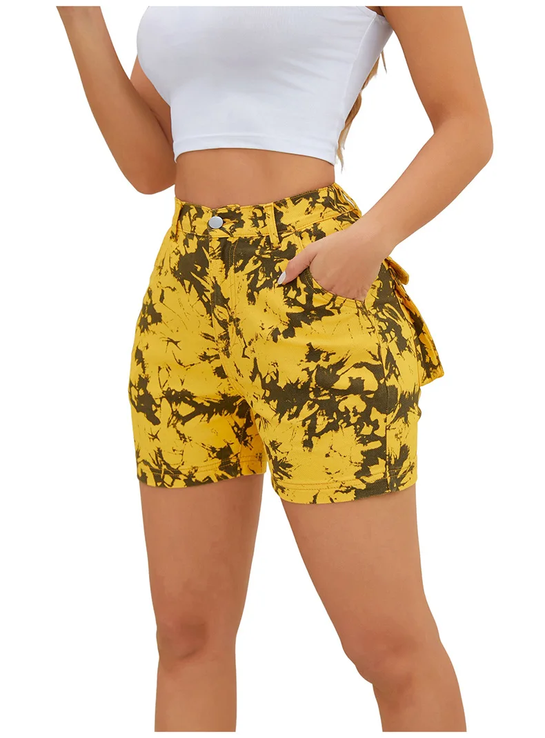 Printed Stretch Jeans Vintage Streetwear Cargo Denim Shorts