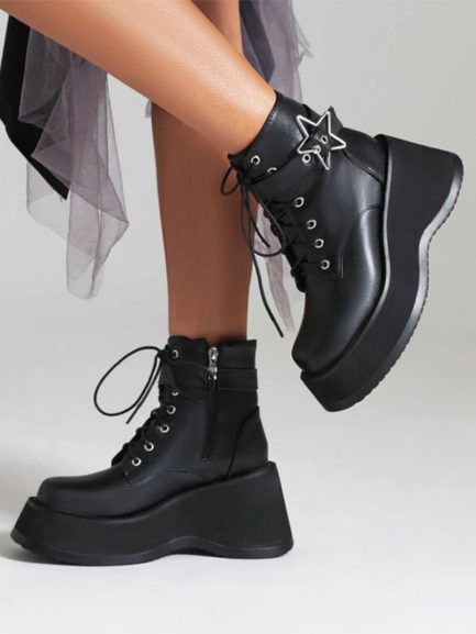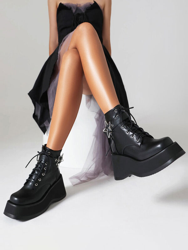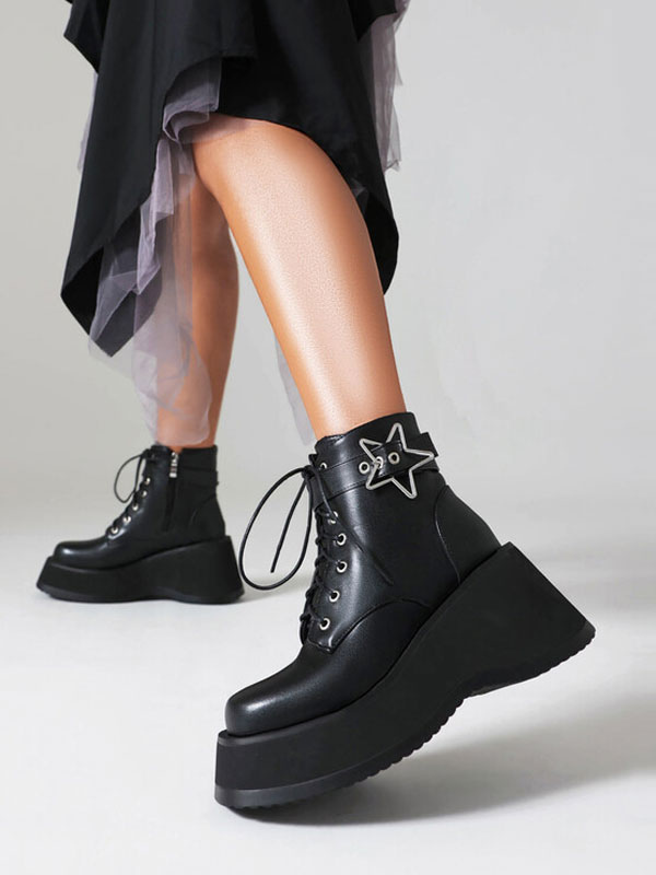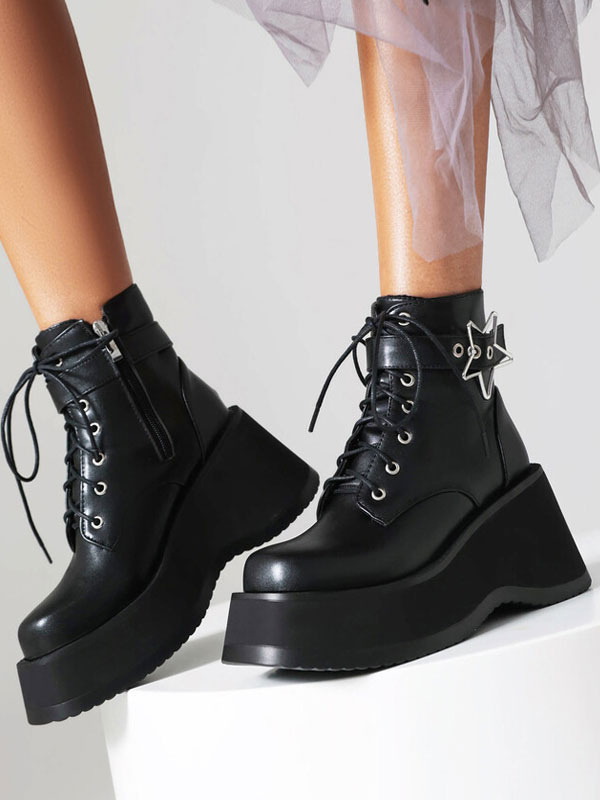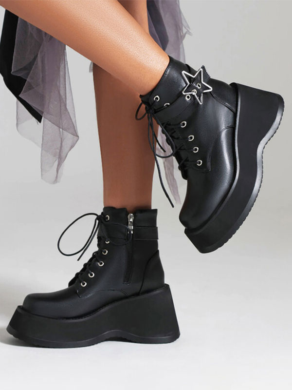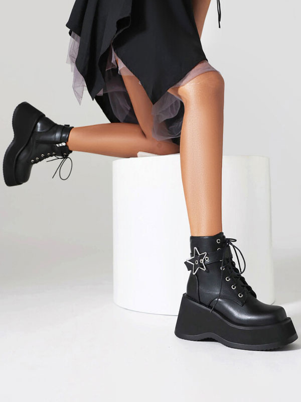 PU Leather Round Toe Heelless Ankle Boots