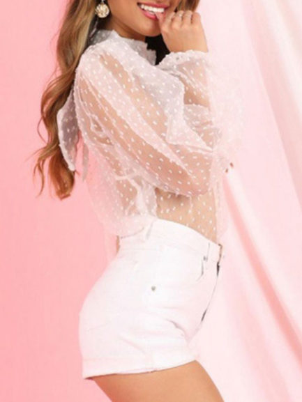 Be the first to review “Puff Sleeve Blouse Lace Sheer Long Sleeves Sexy Tops”