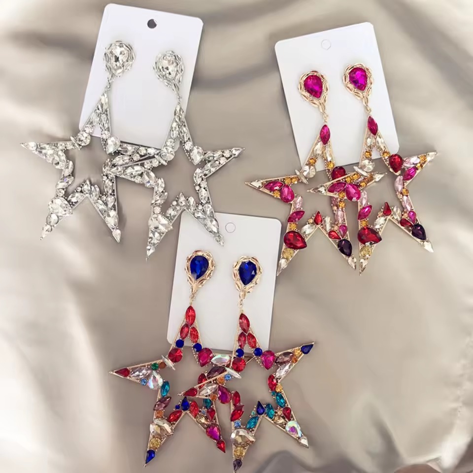 Rhinestone Exaggerated Alloy Big Star Pendant Dangle Earrings