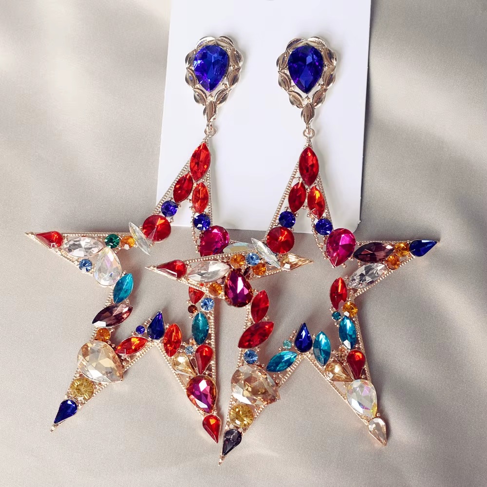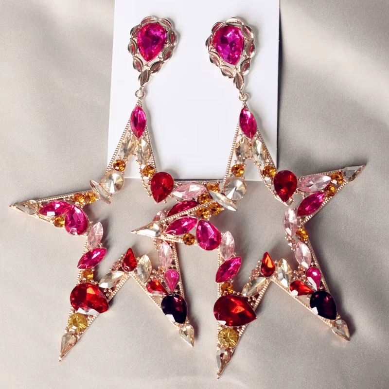 Be the first to review “Rhinestone Exaggerated Alloy Big Star Pendant Dangle Earrings”