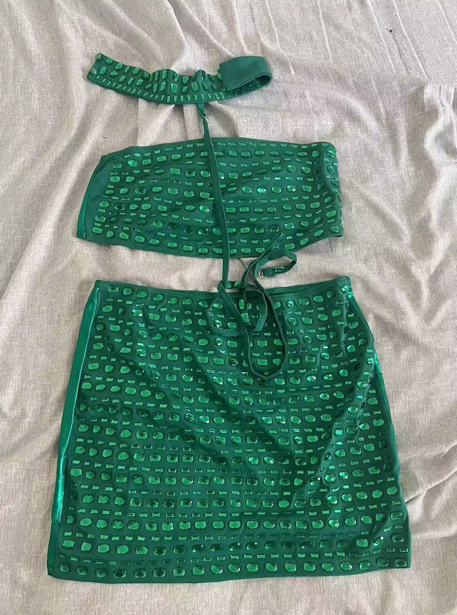 Be the first to review “Rhinestones Strapless Halter Night Club Birthday Outfits Two 2 Piece Mini Skirt”