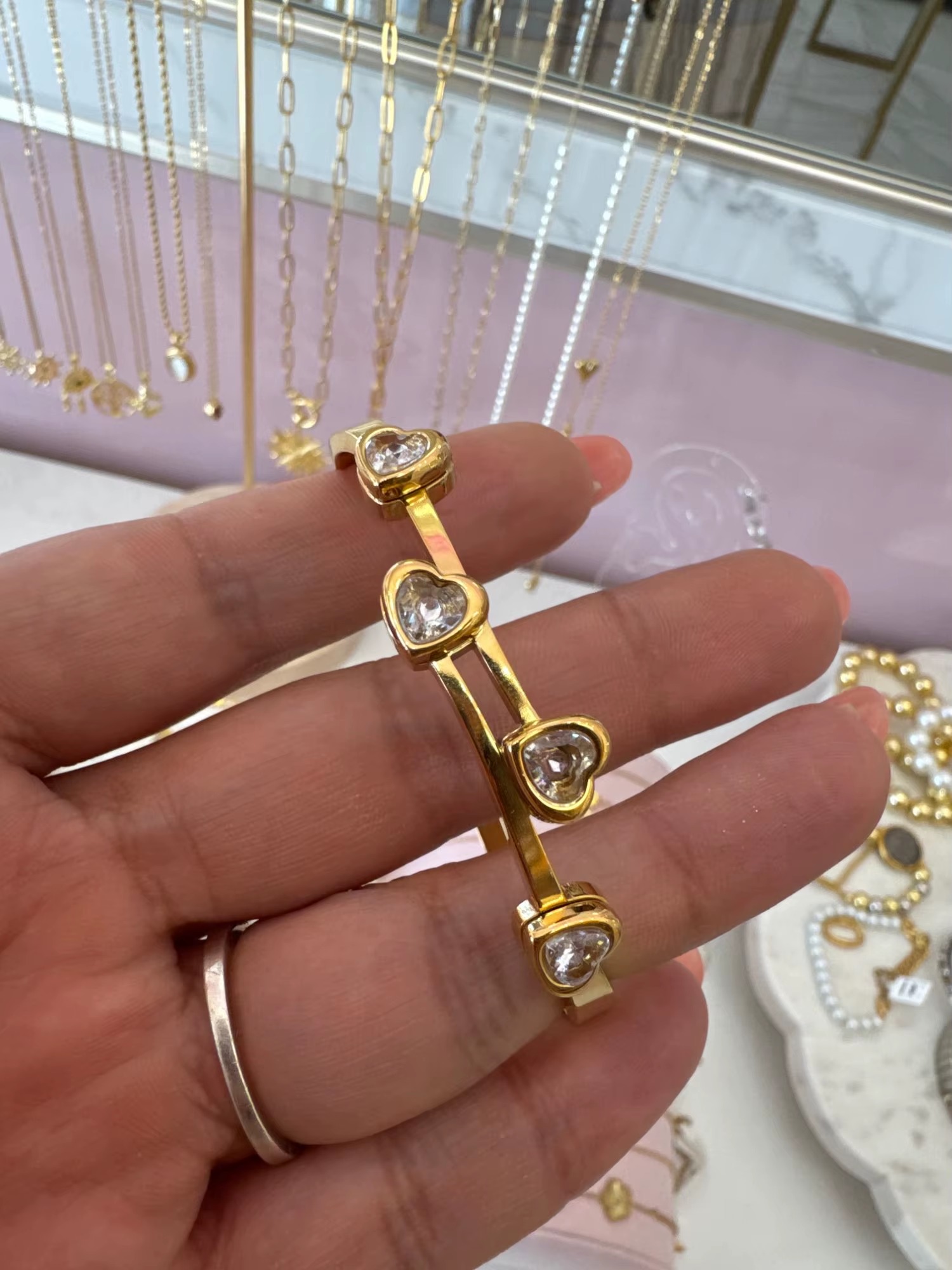 Be the first to review “Romantic Cubic Zirconia Heart Stainless Steel Valentine’s Day Bangles Bracelets”