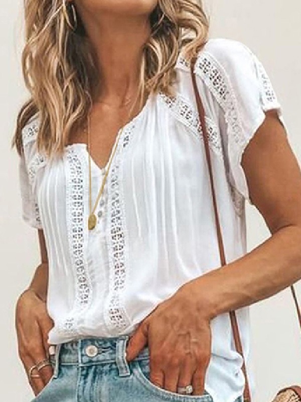 Be the first to review “Round Split Buttoned Short Sleeves Blouse”