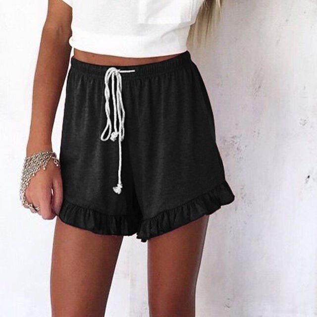 Be the first to review “Ruffles High Waist Casual Drawstring Shorts”