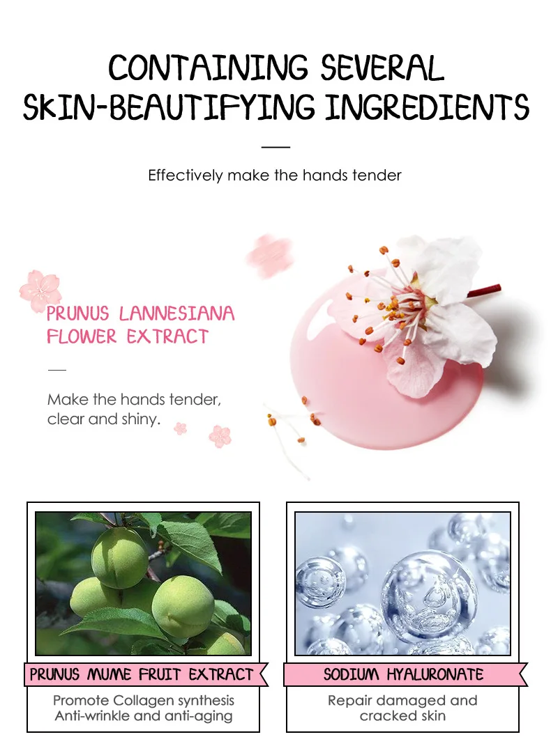 Add moisture to your hands, leaving your hands soft and smooth, revealing delicate hands. Helps replenish moisture needed by the skin, helping to improve dry, white and brighten skin.