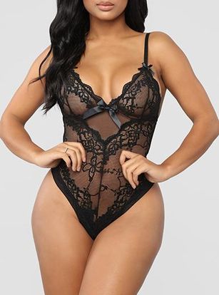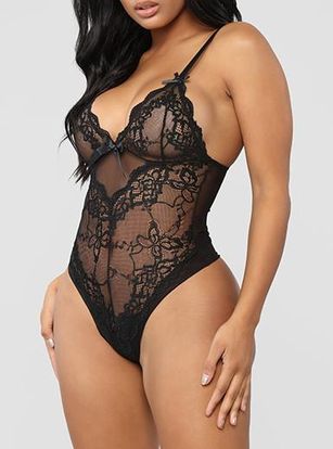 Scalloped Wide V Top Lingerie Lace Bodysuit